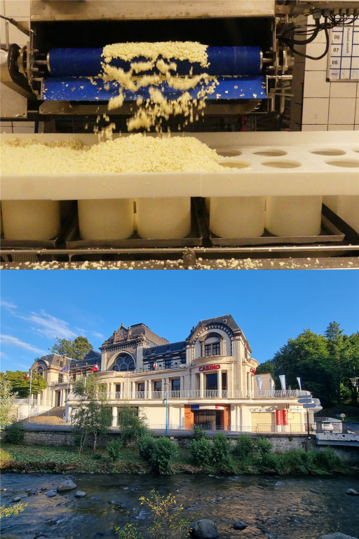 [Bilder: die Molkerei La Mémée und La Bourboule mit der Dordogne]